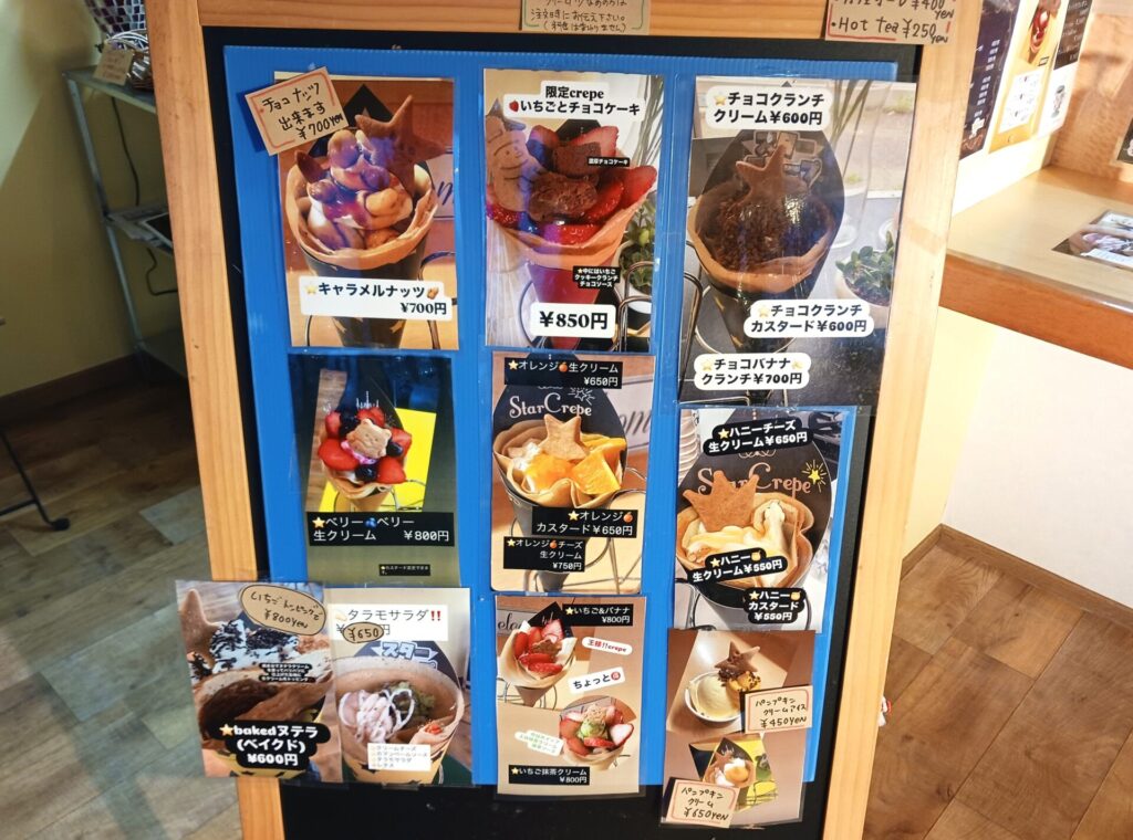 この日はシャインマスカットのクレープが100円引きでした。